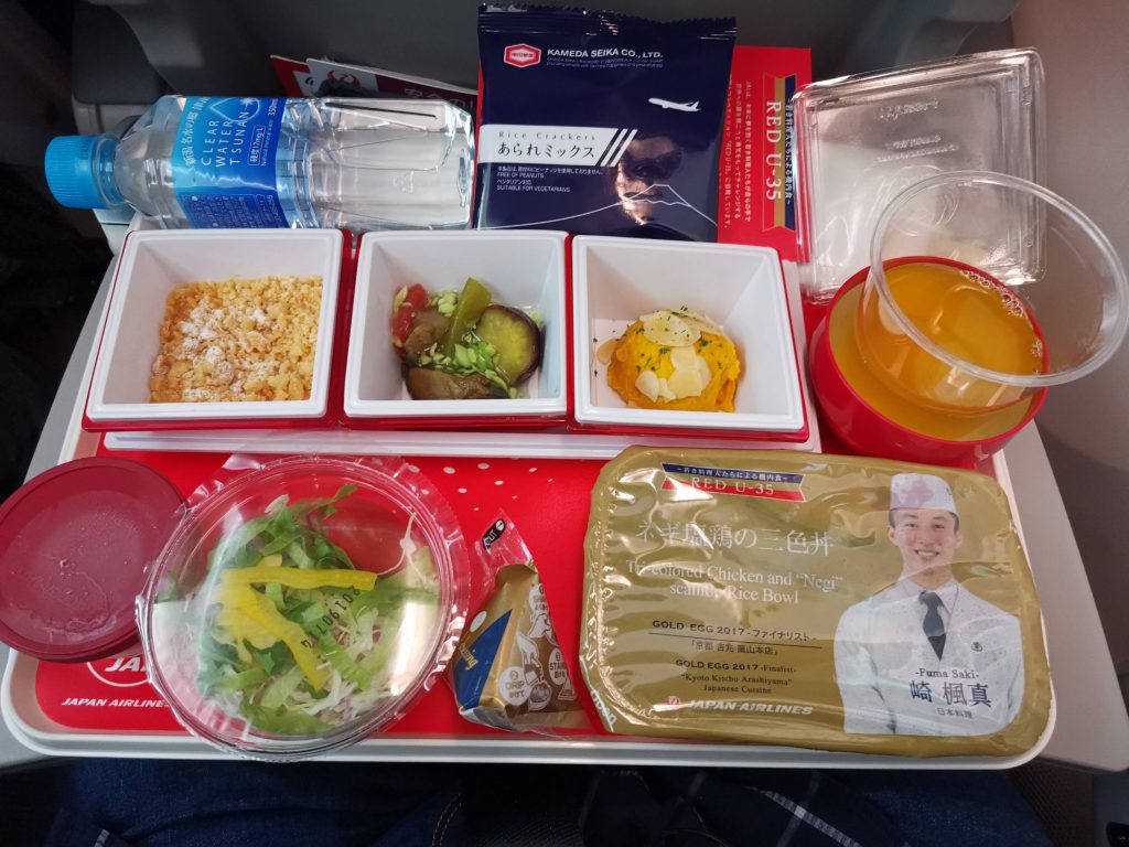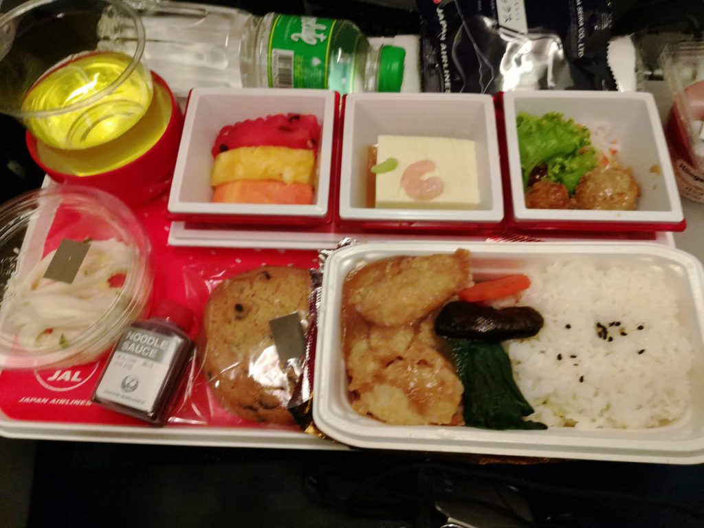 ラウンジ飯を食べた後、日付が変わってから搭乗です。1:25発という夜中の出発ですが、現地の5時(日本時間6時)には到着してしまうのでした。機内食を食べる時間もあるので、なかなか眠かったのでした。