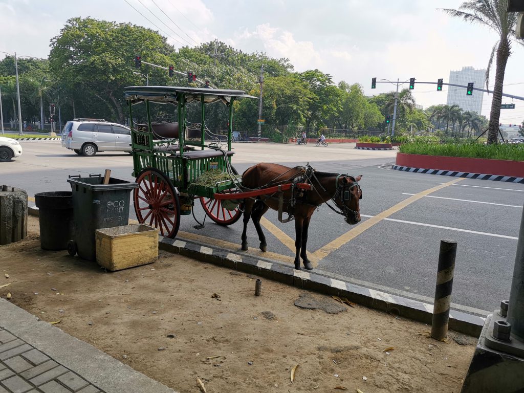 さて、眠い目をこすりながら飛行機を降り、激混みの入国審査(多分直前まで開いてなかったんでしょうね…)を通り抜け、Grabでリサール公園にやってきました。まだ朝7時ということもあり、シドニーの時と同様、朝でも開いてる観光スポットから攻めていく作戦です。公園の周りには東南アジア2では定番の野良犬もいれば、なかなかレトロな馬車を引く馬もいました。