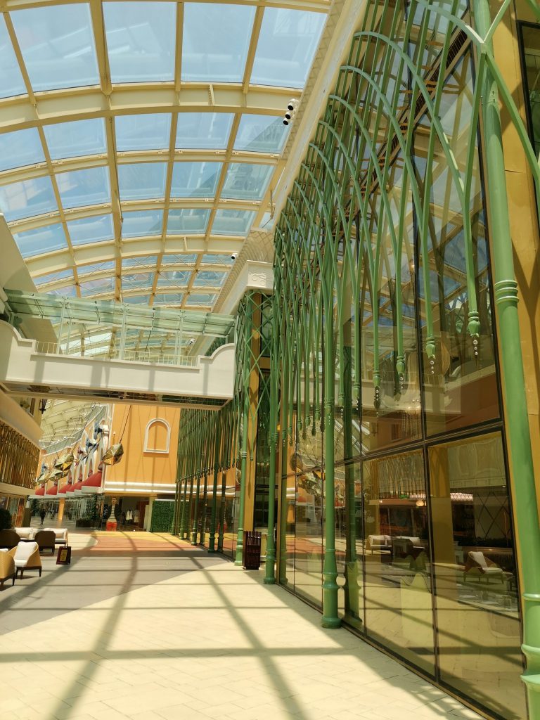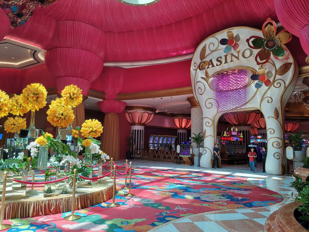 リサール公園をうろうろと観光していたのですが、どうにも暑いな…ということで、しばらくしてからリサール公園のそばのリサールパークホテル併設のカジノに行って時間を潰したりしました。リサールパークホテルのカジノは単にカジノだけ、ということで写真は撮れませんでしたが、その後観光を兼ねて行ってみたのがこちら、オカダ・マニラです。「オカダ」という名前の通り、パチンコ・パチスロ機メーカーであるユニバーサルエンターテインメントの創業者である岡田和生氏がオーナーの統合型リゾートホテルであります。結局ここのカジノには入りませんでしたが、入り口のこのピンクの世界はなかなか強烈でした。カジノ以外にも様々なレストランや店舗が入っていて、まさに統合型リゾート、という感じでした。