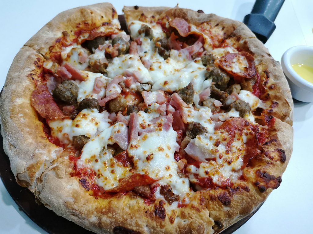 こちらはファーストフードか微妙なラインですが、持ち帰りもあるピザレストランで食べたピザです。ピザがファーストフード的な立ち位置を確保しているのはさすがはアメリカとの関係も深い土地柄、という感じがします。溶かしバターがセットで付いてきたのがちょっと衝撃的でした。