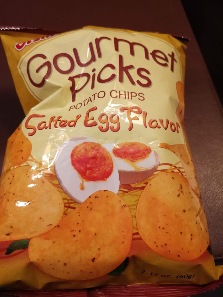 上の写真のビールと一緒におつまみとして塩たまごフレーバーのポテトチップスも買ったのですが、こちらはちょっと私の口には合わなかったです…