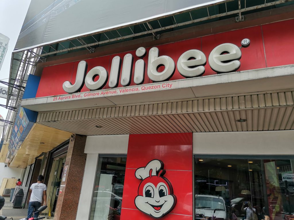 お次はファーストフード編です。SM Aura Premireでも見たJollibeeにも行ったのでした。自分が実際に入ったのはGilmore I.T. Centerの向かいのお店です。ここやSM Aura Premireに限らず、今回の滞在中は様々なところでこのJollibeeのロゴと蜂のマスコット(リトル・ジョリビーという名前だそうです)の顔を見かけました。ちなみにこのJollibee、フィリピンではマクドナルドを抑えてファーストフード市場のシェア1位とのことです。