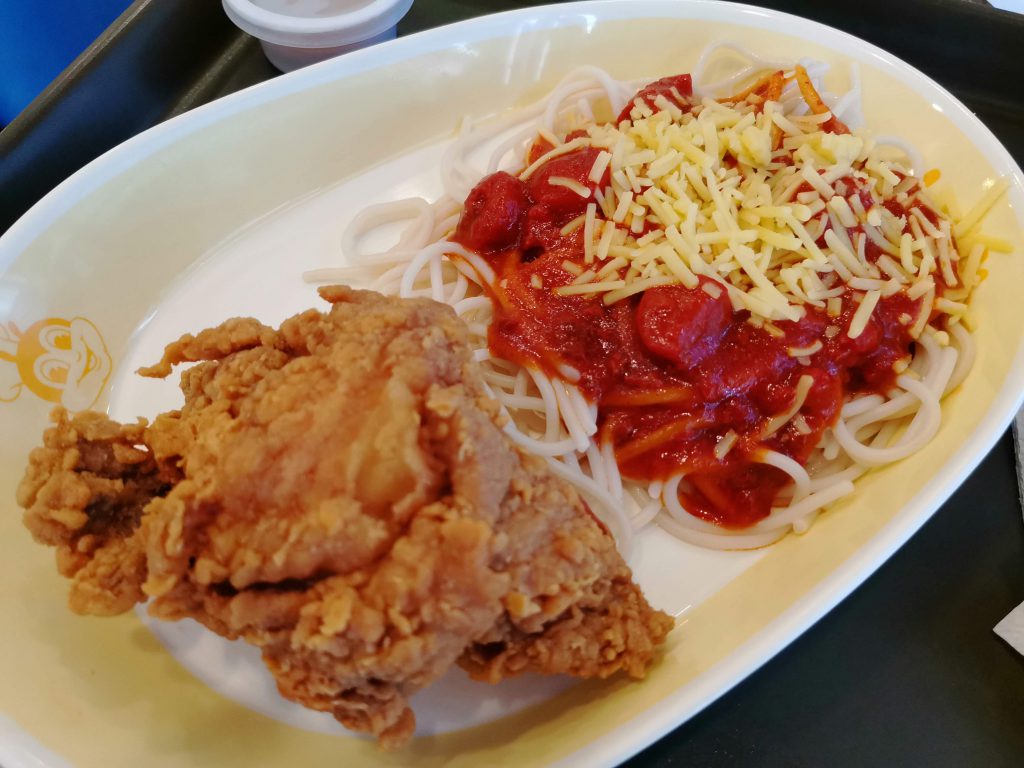 また、甘い味付けで有名なパスタも食べてみましたが、たしかに甘いものの、なんというか、給食のソフト麺を思い出すような味付けで、これはこれでファーストフードとしてはいいのでは?と思ったのでした。前情報無しでこれを食べるとたしかにびっくりしてしまう人はいるかもしれません。