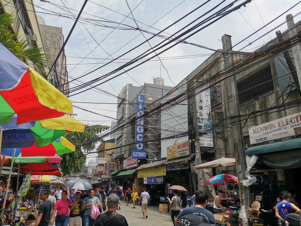 Recto駅の周辺の歩道橋から通りを撮影してみました。地元の方の買い物エリアという感じで、電子パーツ街だけでなく、周囲には商店街のような通りが多数見受けられました。