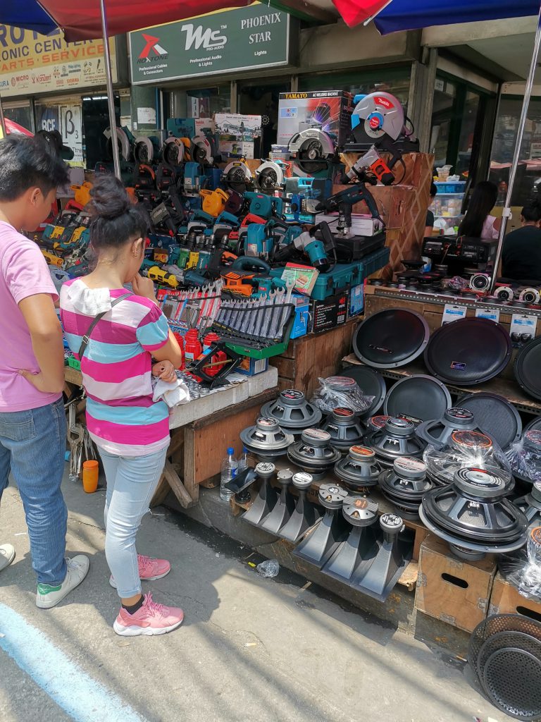 Recto駅から、マニラLRT-1線のCarriedo駅方面へ歩いていくと、このようなで電子部品などを扱うお店が集まる通りが現れます。ちなみに、Recto駅から反対方向へ行くと過密状態になっていることで有名なManila City Jailがあります。写真を見てピンとくる人はピンとくると思うのですが、タイ・バンコクのバンモー系な通りでした。