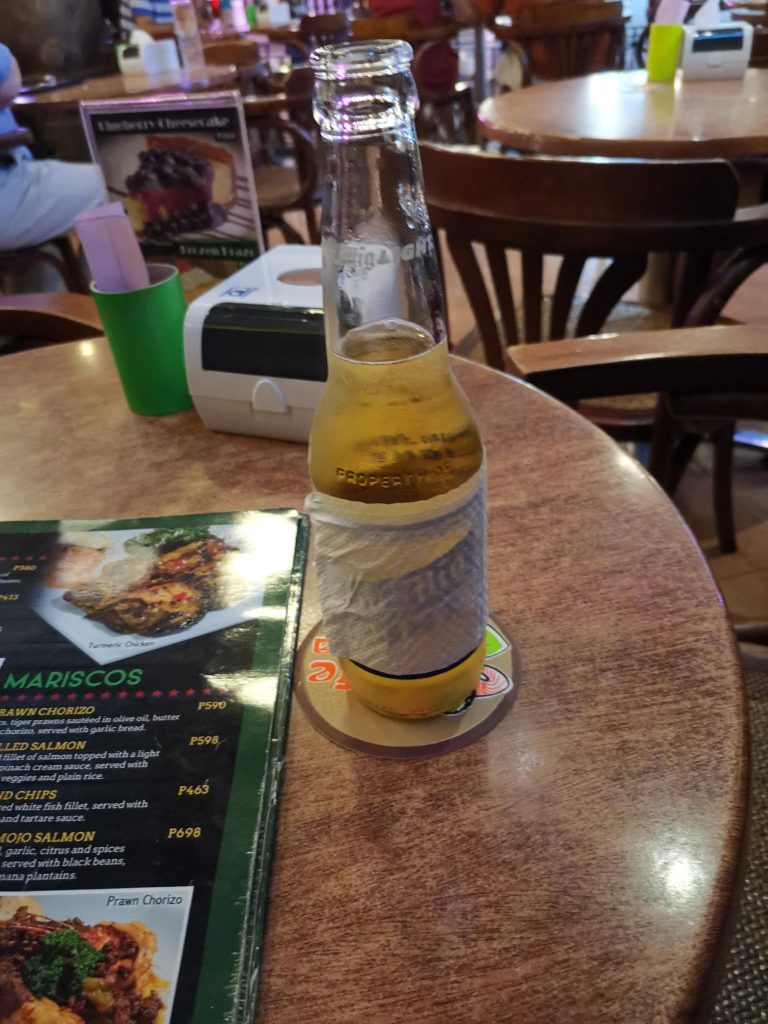 このバーレストランではサンミゲルライトと、フィリピンで醸造したベルジャンタイプのビール”Brew Kettle”を飲みました。サンミゲルライトは特にキンキンに冷えていてめちゃくちゃおいしかったのですが、ごはんが来る前に飲んでいたので結構回ってしまったのでした。Brew Kettleはしっかりとベルジャン系の味わいでこちらはこちらで美味しかった記憶があります。