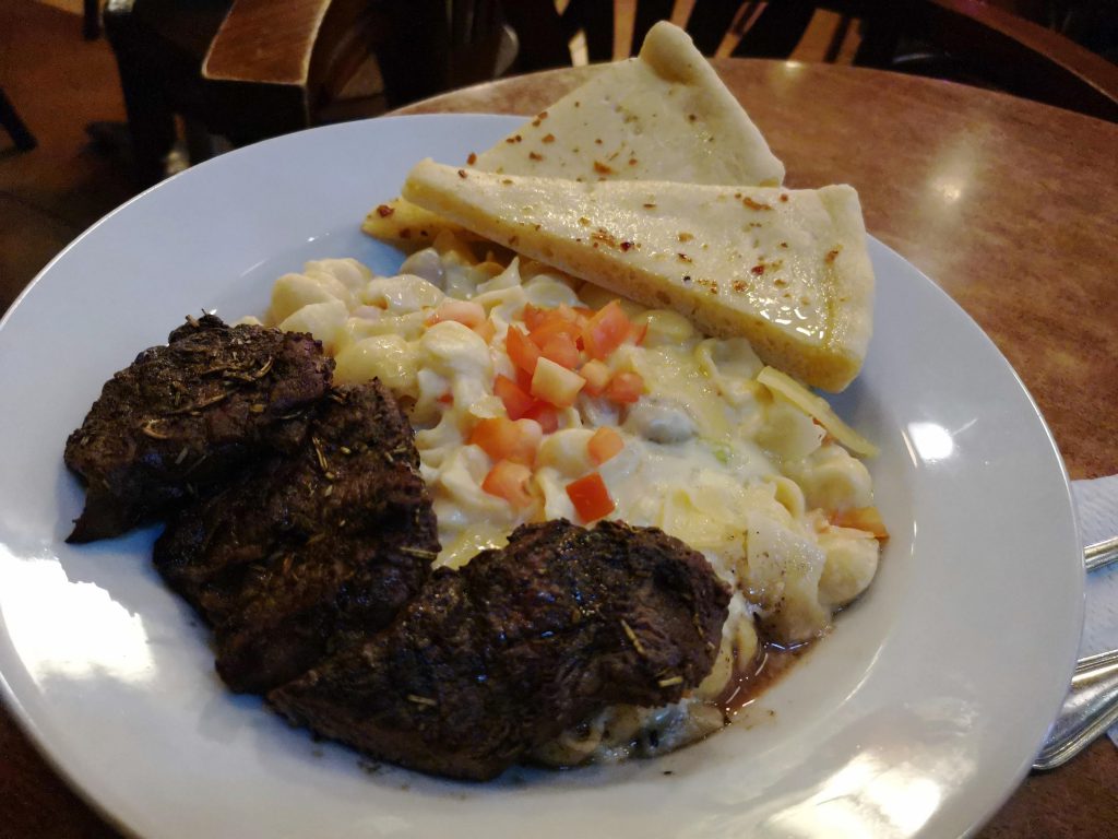 こちらはファーストフードではなく、夜にバーレストランに入って食べたステーキとマックアンドチーズです。一つ前のピザもさることながらこちらもアメリカンな感じです。