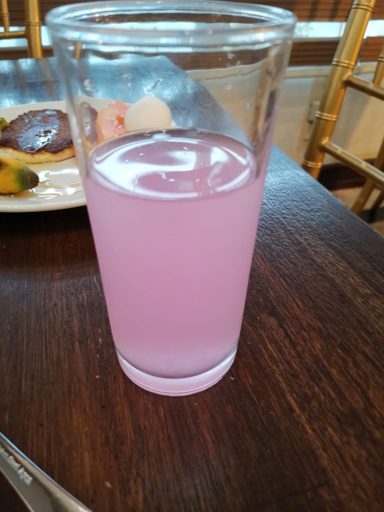 こちらはホテルの朝食ビュッフェで飲んだジュースなのですが、ピンクレモネードだそうです。ピンクグレープフルーツが入ってもここまでの色合いにはならない気がするのですが…味は確かにレモネードでした。