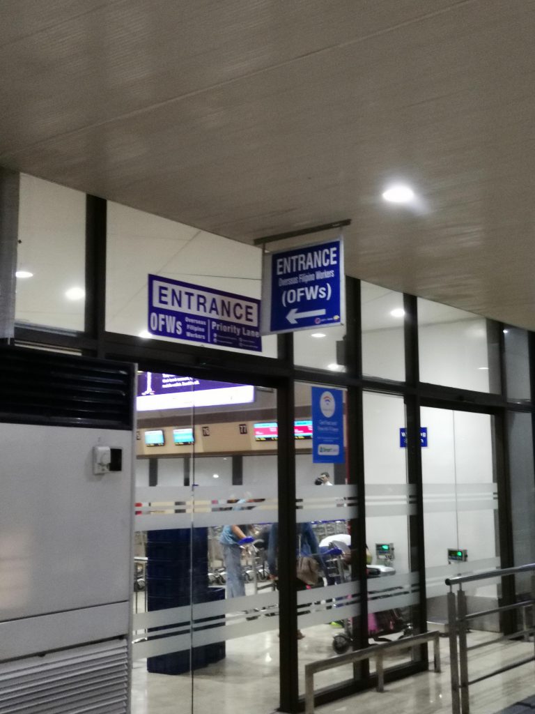 さて、3日目の夕方には日本に戻るべく、ニノイ・アキノ国際空港へと戻りました。車止めからターミナルビルに入る際に、こちらの入り口を発見しました。手ブレで見にくいかと思いますが、”Overseas Filipino Workers Priority Lane”と書いてあります。要するに海外で出稼ぎをしているフィリピン人労働者を優先するためのレーンです。シンガポールや香港のお手伝いさんや、中東での建設業労働者としてフィリピン人労働者が活躍し、実際に彼らからの送金がフィリピン経済を支えているといわれています。このような優先レーンが空港に存在することはそのようなフィリピン経済の現状を物語っていると感じたのでした。
