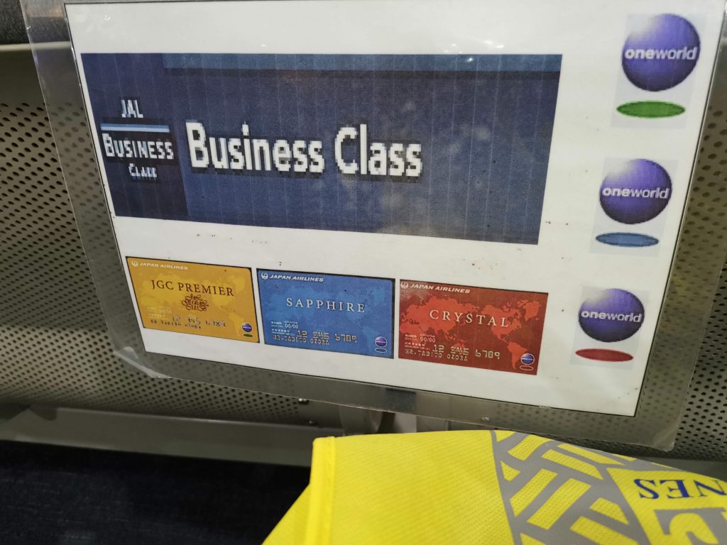 ラウンジで一息ついた後はお土産にドライマンゴーを買い、搭乗ゲートに行きました。ちょっとおもしろかったのは、ビジネスクラス利用者およびワンワールドのステータスメンバーだけが座れる待合座席が用意されていたことです。他の空港では見たことがないサービスです。