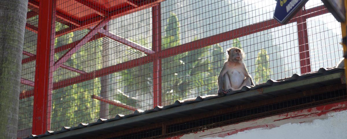 そしてここからはひたすらに200段以上ある階段を上り、頂上の洞窟を目指します。日が出て暑くなってくる前に行って大正解でした。日中だったら暑くてギブアップしてしまいそうでした。階段の途中にはかなり人に慣れているお猿さんが何匹もいました。