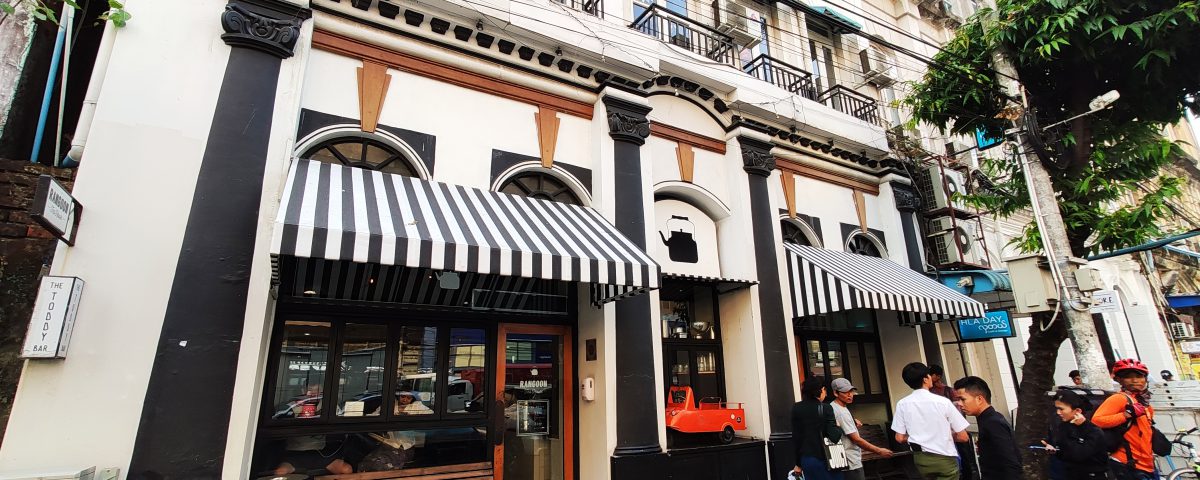 いよいよフライトの時間も迫ってきたのですが、最後にミャンマー式の紅茶である「ラペイエ」を飲んでおこうとDay1にも訪問した電気街通りでもあるパンソーダン通りにある”Rangoon Tea House”へ行きました。ご覧の通り実におしゃれなティーハウスであります。