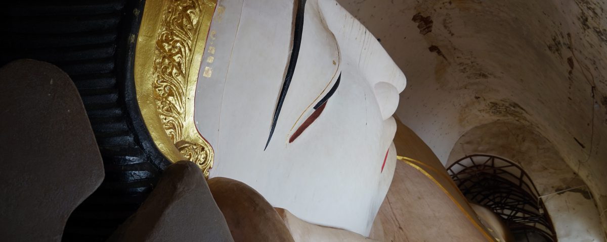 こちらの寺院には涅槃仏像もあります。仏像自体が大きいのもありますが、こちらもお堂が狭く、かなりの圧迫感と迫力でした。