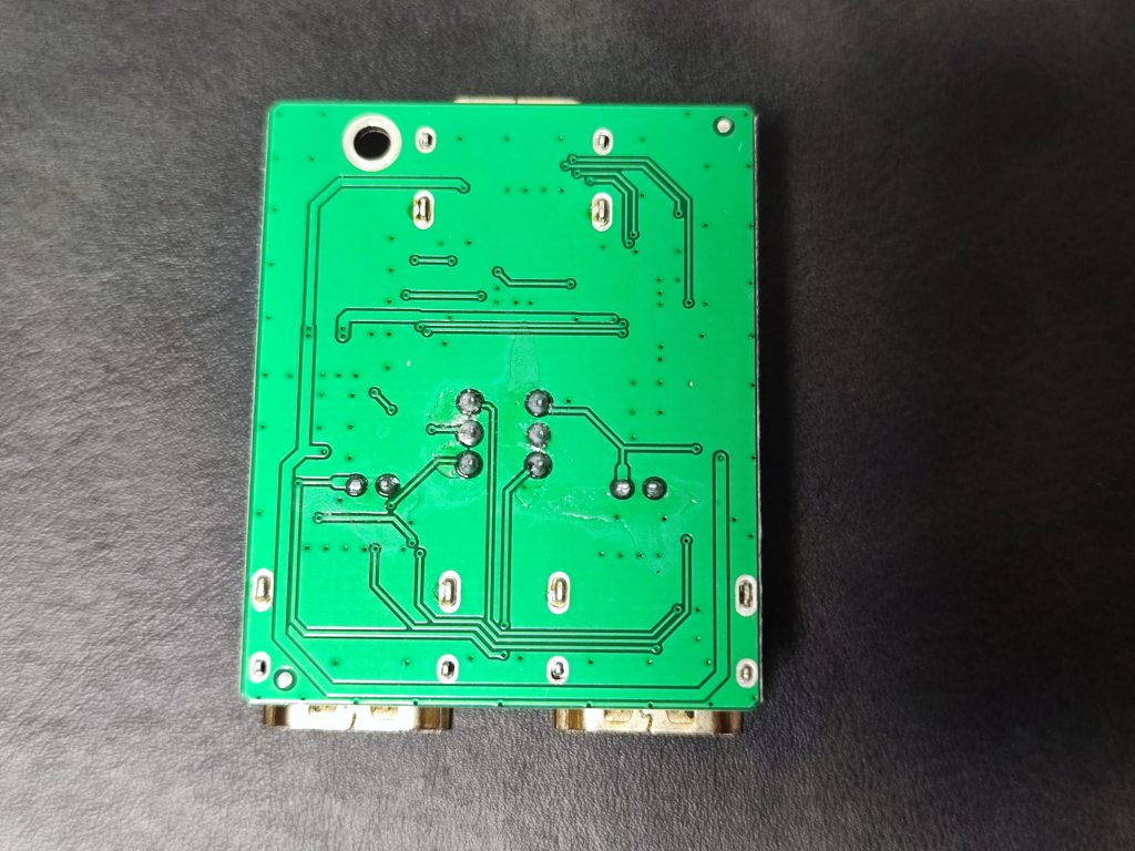 解析の結果、このHDMI切り替え機では2つの信号を1つのボタンで切り替えていることが分かりました。上の写真ではボタンが取り外され、ボタンの下にあった左右に3つずつ、計6個の端子が見えるようになっています。左側の3つの端子が入力を切り替えるうえで重要な働きをしています。3つ並んだ端子のうち、ボタンが押し込まれている状態では上側の端子と真ん中の端子が、ボタンが飛び出ている状態では下側の端子と真ん中の端子が接続された状態となります。真ん中の端子はGNDに接続されているため、選択したい入力ポートに合わせて、上下の端子をGNDに落としてやれば、ボタンと同等の働きを実現できそうです。