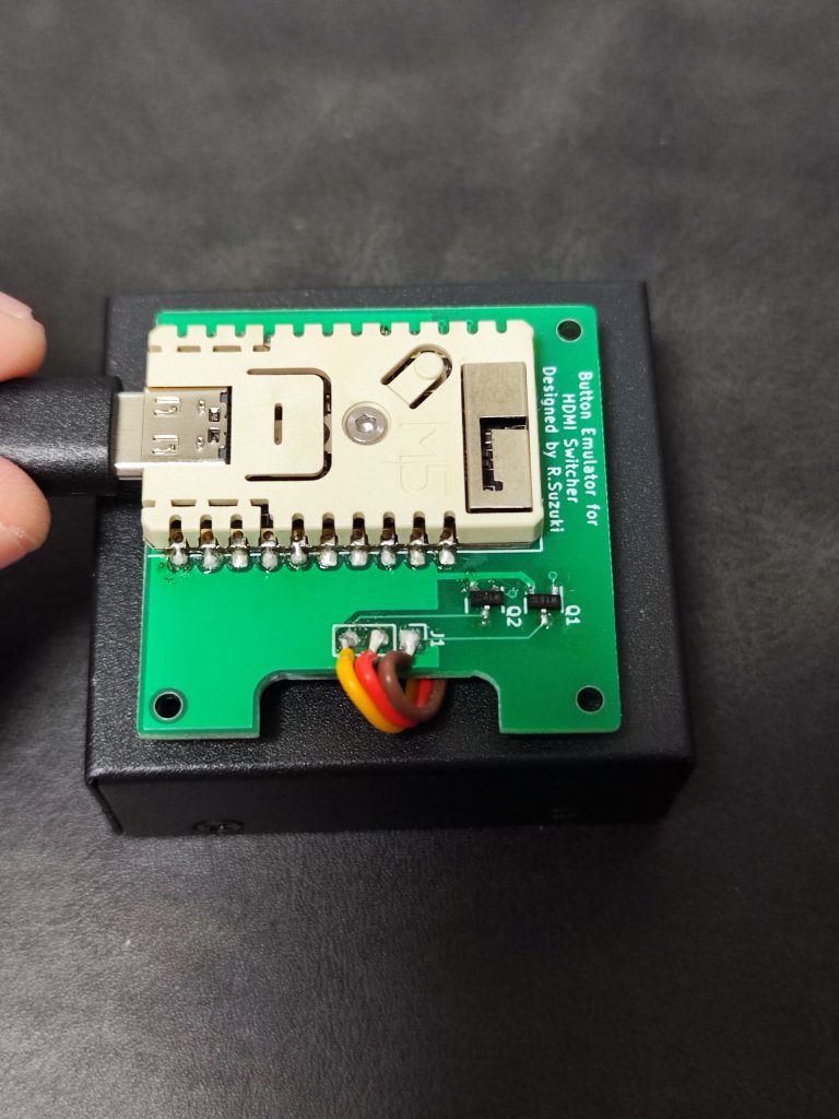 そこで、このHDMI切り替え機の上についているボタンの信号を乗っ取り、WiFiで遠隔から制御できるようにしてしまえばいいのではないかと考えました。そうすれば、元々SONYのテレビでやっていたようにM5Stackなどでリモコンを作るのも簡単ですし、ケーブルが刺さった本体を手元に置いておく必要もなくなります。