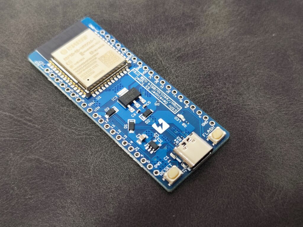今回はスイッチサイエンスから2月に発売されたばかりの”ESPr® Developer S3 Type-C (USBシリアル変換ICなし)“を使うことにしました。ESP32(無印)と異なり、ESP32-S3はUSBでのファームウェア書き込み機能を持っているので、基板上に別途ファームウェア書き込み用のUSB-UART変換ICを配置する必要がありません。そのため、この基板はかなりすっきりとした見た目になっています。