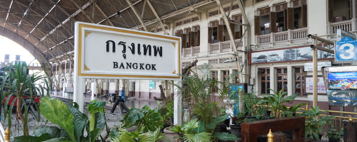 従来、長距離列車はフアランポーン駅を終着駅としていましたが、2023年に新たなターミナル駅として整備されたクルンテープ・アピワット中央駅に終着駅が変更になりました。写真のように駅舎には”BANG SUE GRAND STATION”と書いてありますが、これはもともとここにあった駅がバーンスー駅という駅だったからです。この駅自体もバーンスー中央駅として開業したのですが、のちに国王が新たにクルンテープ・アピワット中央駅と命名したため、このような表記違いがちらほらと残っているというわけです。