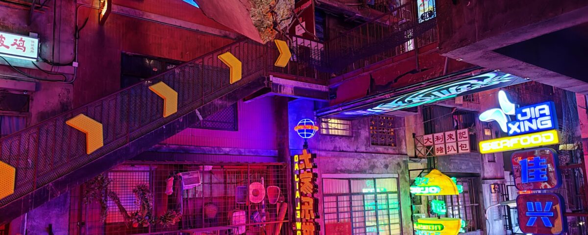 さて、華強北博物館を出た後に向かったのは同じく前回の訪問時にはまだなかったスポット、深圳文和友です。こちらはサイバーパンクな雰囲気をテーマにしたテーマパーク系フードコート、といったところでしょうか。中国国内に何か所かあり、深圳にも進出して行列ができているという噂を聞いていました。