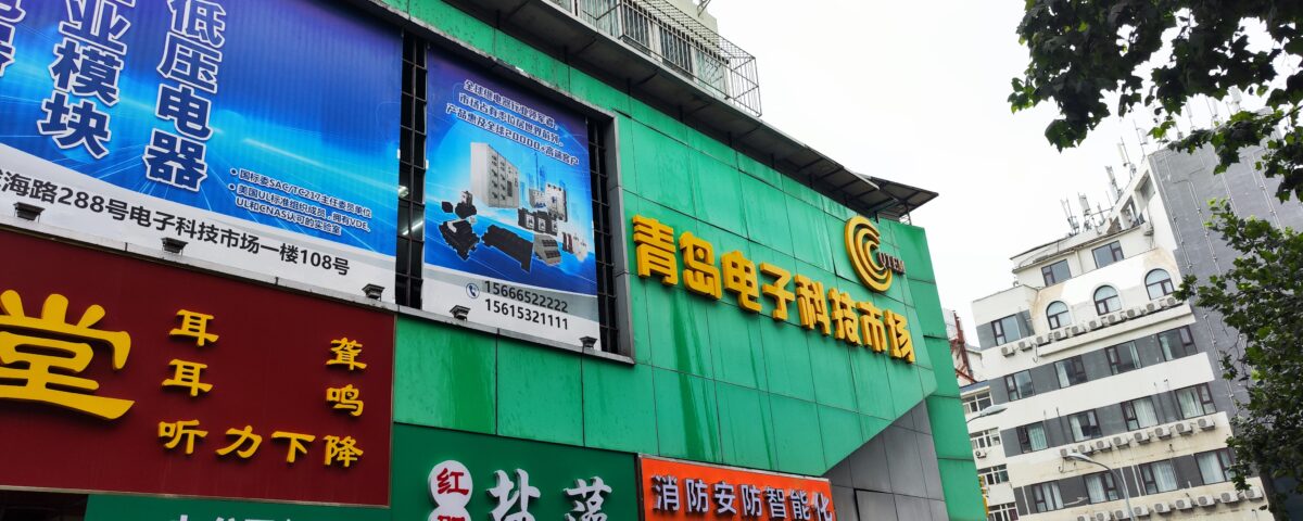 ちなみにこの辺りには他にも似たようなスタイルの電気街と思しき建物がいくつもあるのですが、見た感じでは青島電子科技市場と山賀電子市場がこの辺りのツートップという感じでした。手前の看板を見るに、中国語で「シーメンス」は「西門子」って書くんですね。確かに中国語の発音を考えると納得の当て字です。
