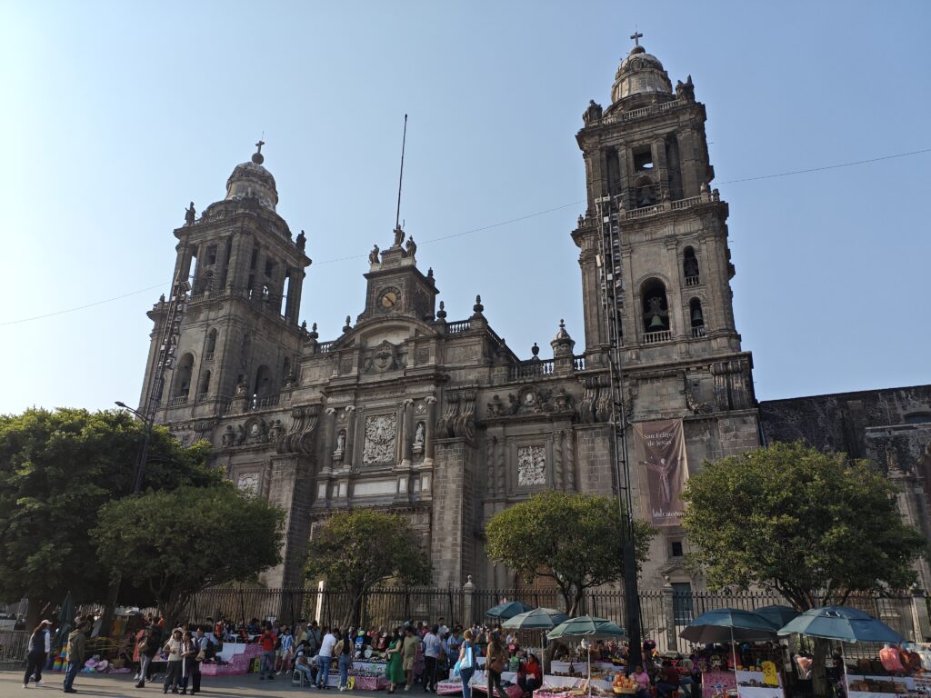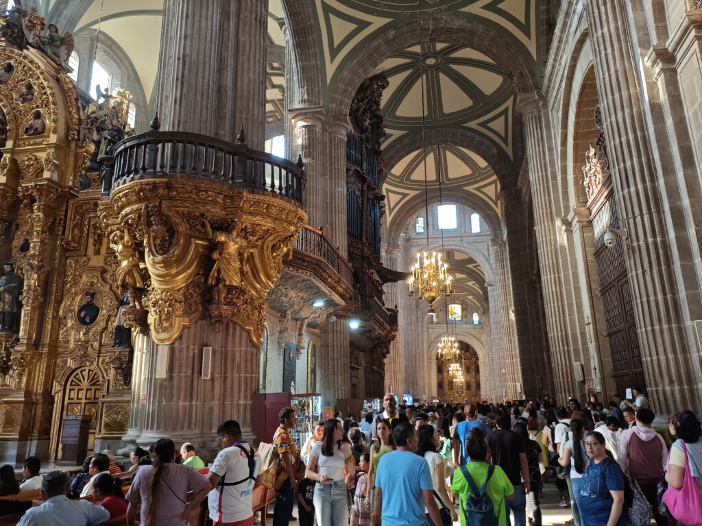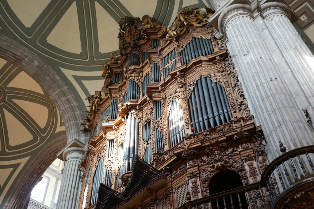メトロポリタン大聖堂はヨーロッパの大聖堂にも負けない、大きく荘厳な造りでした。たまたま訪問時は写真のパイプオルガンの演奏が行われていて、これがまたかなりの迫力でした。また、2枚目の写真の通り大聖堂の中がかなり混雑していて、メキシコの人口の多さを感じました。この時に調べて知ったのですが、メキシコは今や1.3億人と日本よりも人口が多いのでした。若年人口でいうとさらに日本と差があるでしょうし、なるほど電気街が賑わうのも納得…などと考えてしまいました。