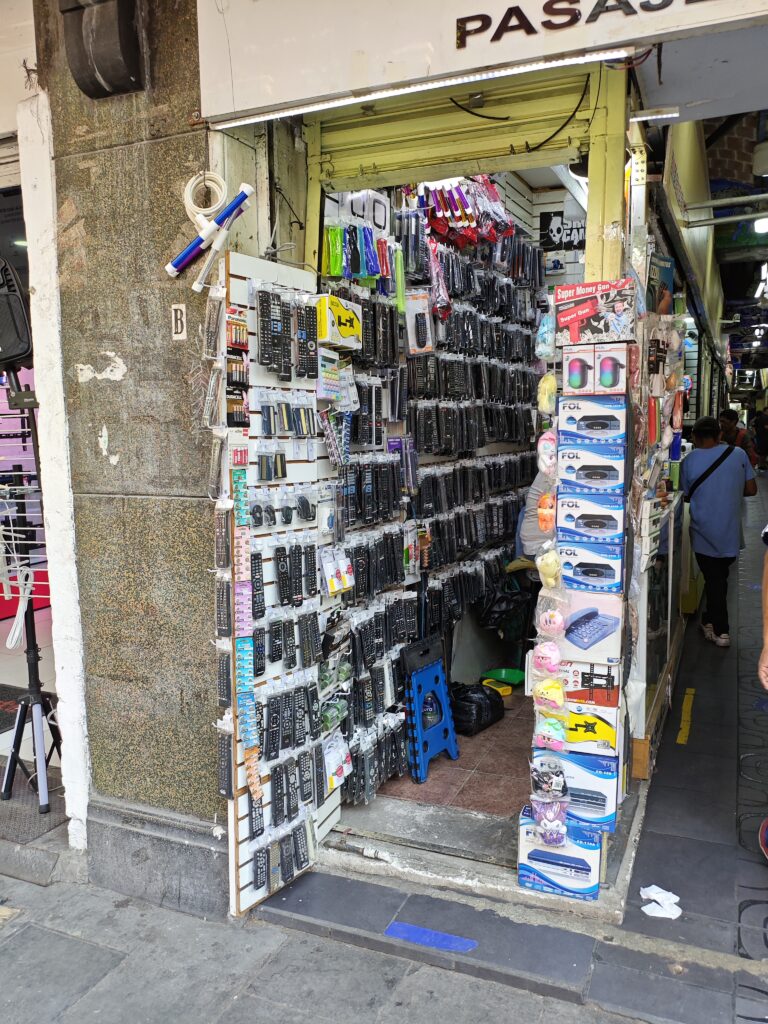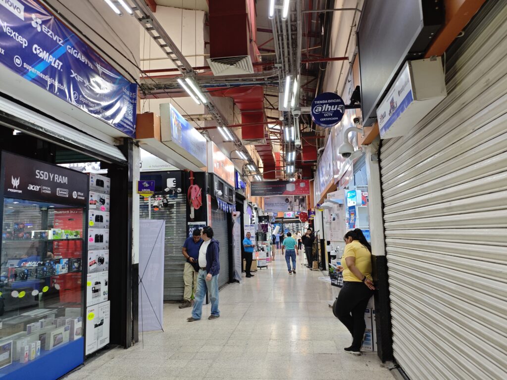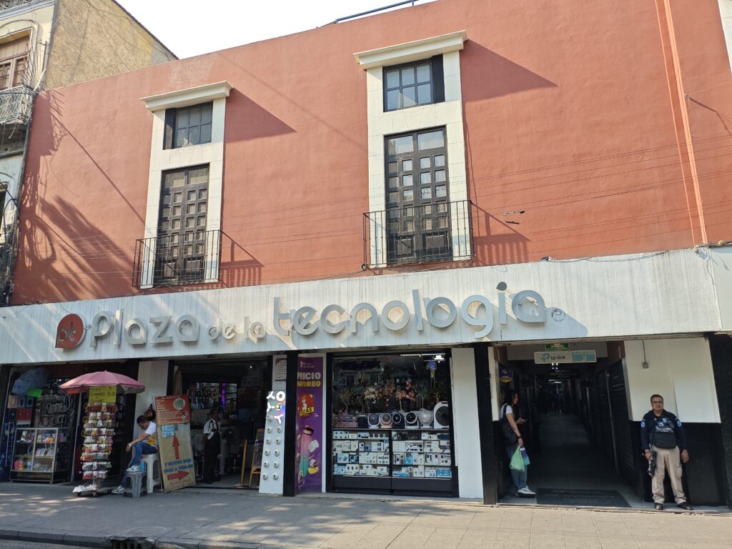 先ほどから書いているように、メキシコシティの電気街は通り沿いに複数のテナントビルが建っているスタイルです。その中でも特に規模が大きいと感じたのがこちらの”Plaza de la technologia”です。ここに限らないですが、大体1階と2階が店舗、さらに上のフロアがある場合そこは倉庫やオフィスというパターンが多かったです。