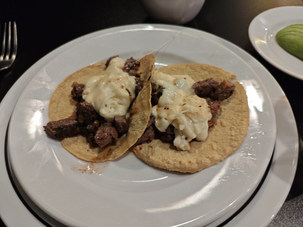ベジャス・アルテス宮殿から空港に戻った後、空港のラウンジにプライオリティ・パスを使って入ろうとしました。しかしあいにく満席ということだったので、同じくプライオリティ・パスの特典で割引のあるレストランでビールを飲みながら時間をつぶすことにしました。おつまみで頼んだ牛肉のタコスの味もなかなかでしたが、おしゃれにスライスされたアボカドを見てさすがはアボカドの産地、と唸ってしまったのでした。