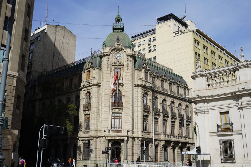 モネダ宮殿の近くには行政機関が入居する建物が多数あります。1枚目はサンティアゴ都市圏(首都州)の事務所、2枚目の写真は最高裁判所の写真です。どちらもなかなかヨーロッパ風のクラシカルな建物でした。