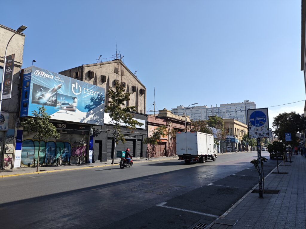 アルマス広場をぐるっと回った後はサンティアゴの電気街を調査しに行きました。サンティアゴの電気街はサンディエゴ通り(ややこしい!)沿いにあります。地下鉄3号線のParque Almagro(アルマグロ公園)駅まで移動し、そこから歩いて向かいました。ちなみに、電気街だけを見るのであればアルマス広場駅から見てもう一つ先のMatta駅まで移動して戻るような感じの方が近いかもしれません。