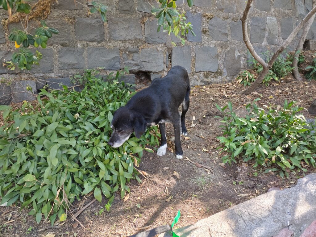 ちなみに野良っぽい本物のワンちゃんもいました。足の先のワンポイントの白い柄がいいですね。