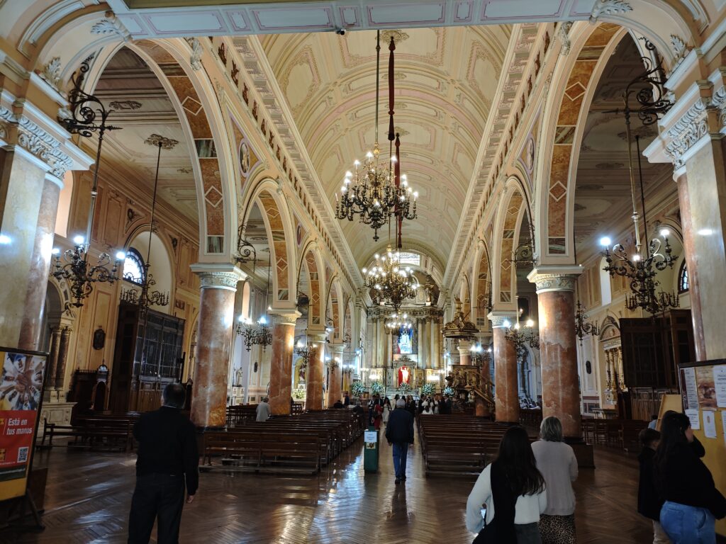 この教会は1760年代に創立され、現在の建物は1850年代から建設された3代目の建物だそうです。アルマス広場のサンティアゴ大聖堂に比べると少し小さいとはいえ、こちらも負けず劣らずの荘厳さの教会でした。