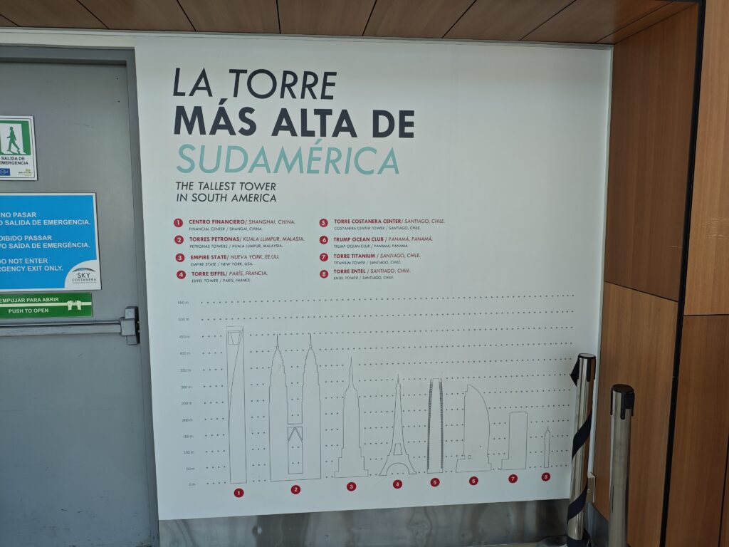 このコスタネラセンターにはスカイ・コスタネラという展望台があります。海外の展望台あるあるですが、入場料は3300円ほどとそこそこいい値段がします。とはいえ南米で一番高いビルの展望台、と言われたら行かないわけにはいきません。チケットを買ってエレベーターでスタッフさんの流れるような紹介(これも海外の展望台あるあるですね!)を聞きつつ展望台へと向かいました。