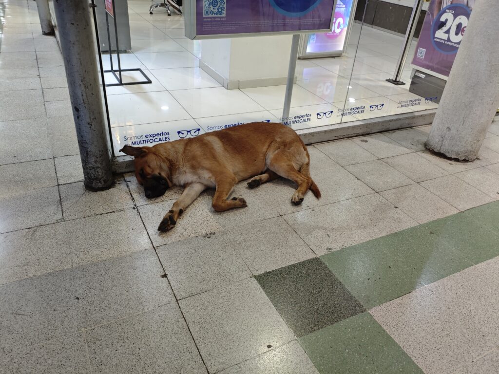 ちなみに中央駅は駅ビルとでもいうのでしょうか、専門店が集まる建物が併設されていました。そこの通路ではご覧の通りワンちゃんがスヤスヤと寝ていました。バルパライソで見たワンちゃんといいこの子といい、スペイン語圏だしシエスタの習慣でもあるのだろうか…と思ってしまう快眠具合です。