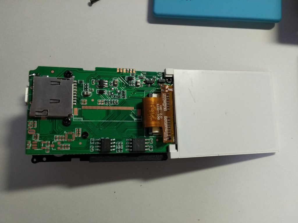 右側の白い長方形がLCDモジュールになります.フレキには”HD-2.0 LCD-100″との記述がありました.コネクタでの接続なので,LCDと基板は簡単に分離可能です.
